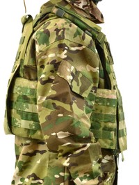 Модульная система позволяет добавлять необходимые элементы защиты, а так же доукомплектовывать бронежилет бронеплитами. Жилет выполнен из высокопрочного материала Cordura гарантирующего оптимальное сочетание легкости и надежности, а камуфляжная расцветка A-TACS обеспечивает эффективную маскировку в лесной и лесостепной местности, делая бойца менее заметным на фоне природного ландшафта.