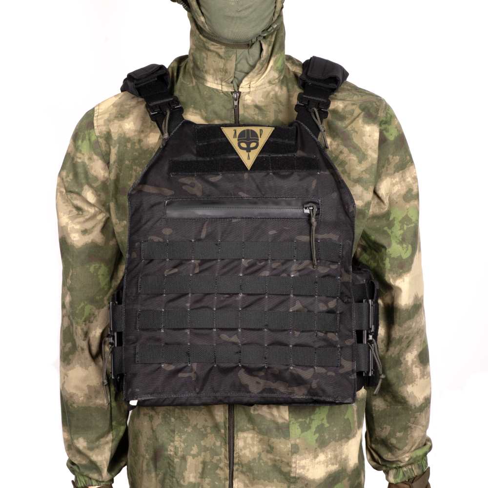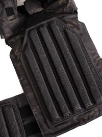 - Жилет из ткани Cordura 1000 D с четырьмя быстросъёмными креплениями, по два на поясе и плесах.