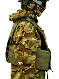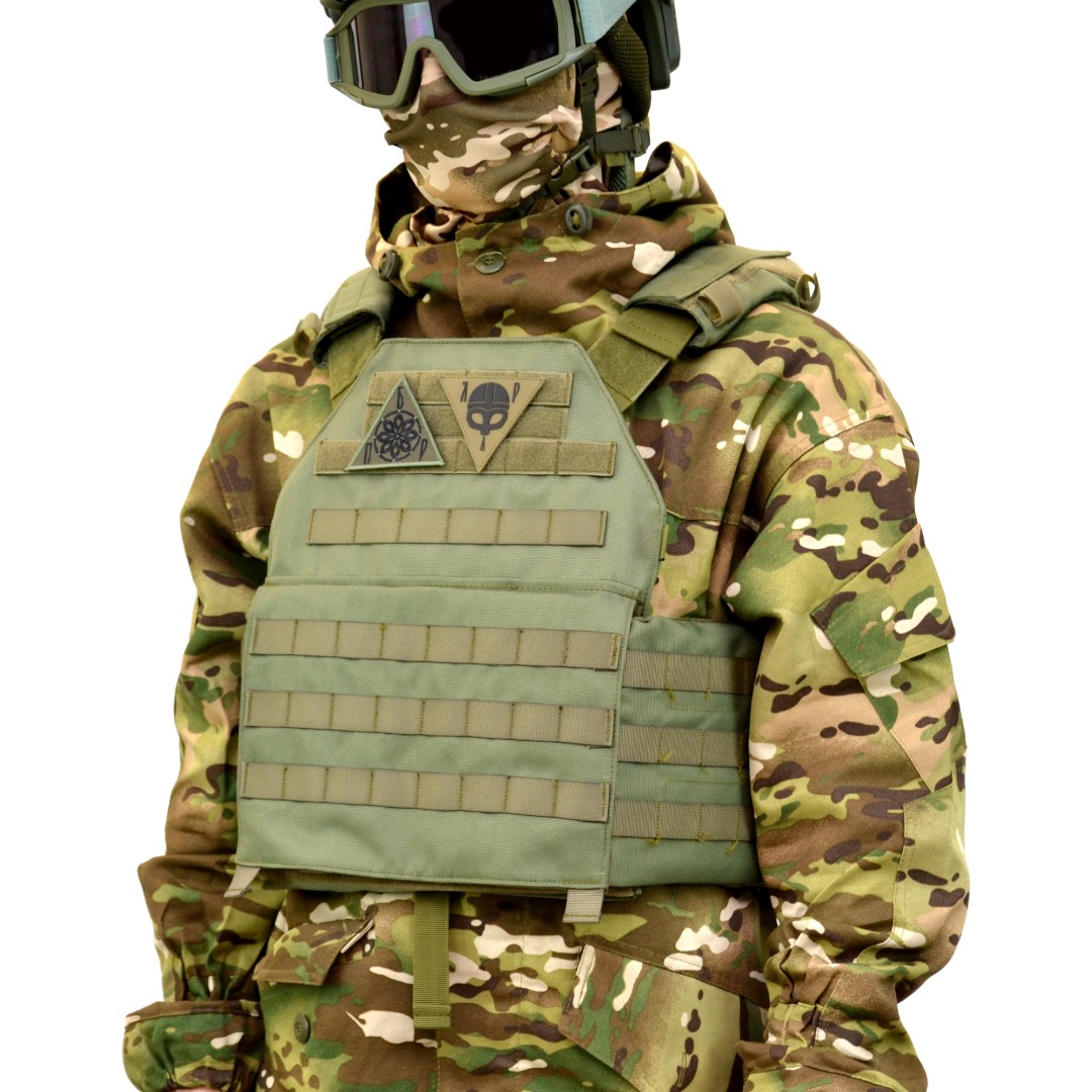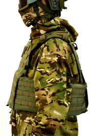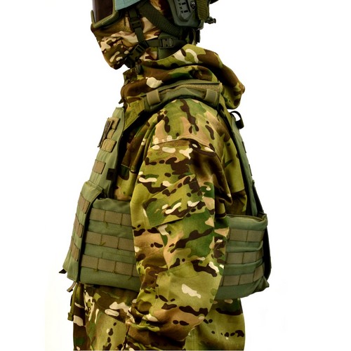 Поддерживает установку дополнительных защитных элементов — боковых панелей, защиты шеи и паха, конструкция совместима с современными разгрузочными системами и тактическим снаряжением, что позволяет адаптировать комплектацию под конкретные боевые задачи.