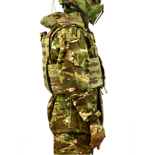 Изготовлен из прочной, износостойкой, водонепроницаемой, не горючей ткани Cordura окрашенной в цвет мультикам и баллистических пакетов из СВМПЭ.