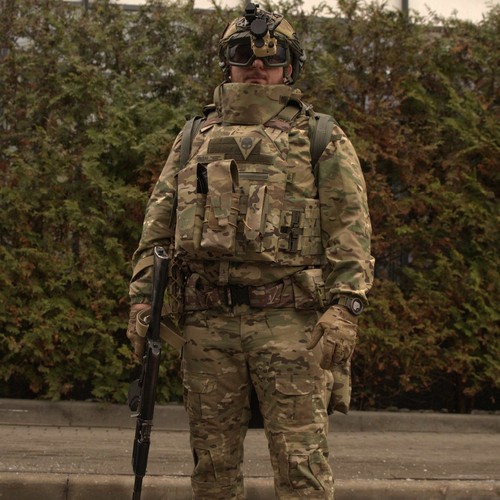 Это увеличенная версия стандартного бронежилета с защитой Бр 5, Бр 1, С2, С по ГОСТ 34286-2017, плиты стандартные, но противоосколочная защита закрывает большую площадь вниз.