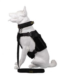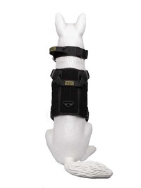 Бронежилет для собак разработан для защиты четвероногих бойцов от поражения осколками, изготовлен из прочной не промокаемой, не горючей ткани Cordura 1000D чёрного цвета и баллистических пакетов из СВМПЭ.