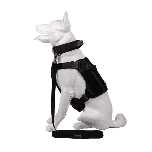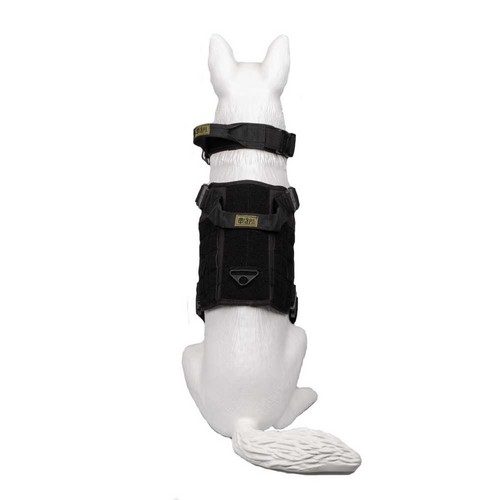 Бронежилет оснащён системой быстрых крепежей липучка, за счёт которой на бронежилет собаки можно крепить дополнительные подсумки и модули.