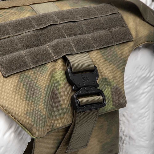 Бронежилет для собак штурмовой оснащен несколькими регулируемыми ремнями и застежками для надежной и индивидуальной посадки. Он имеет удобные ручки для переноски и эвакуации собаки в случае необходимости. Бронежилет также имеет точки крепления для подсумков и дополнительного снаряжения.