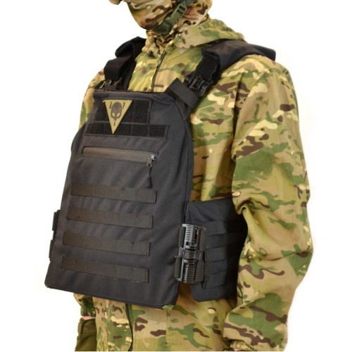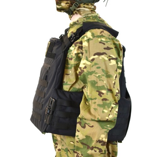 В основе бронежилета - многослойная кевларовая структура, усиленная бронеплитами, такая конструкция эффективно поглощает и распределяет ударную энергию, обеспечивая надежную защиту от широкого спектра угроз, включая пули автоматных калибров и осколочные поражения.