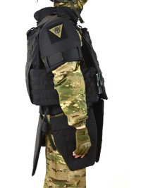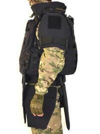 - Модули защиты из той же ткани с баллистическим пакетом внутри: защита шеи, паха, плеч, бёдер, боевой пояс.