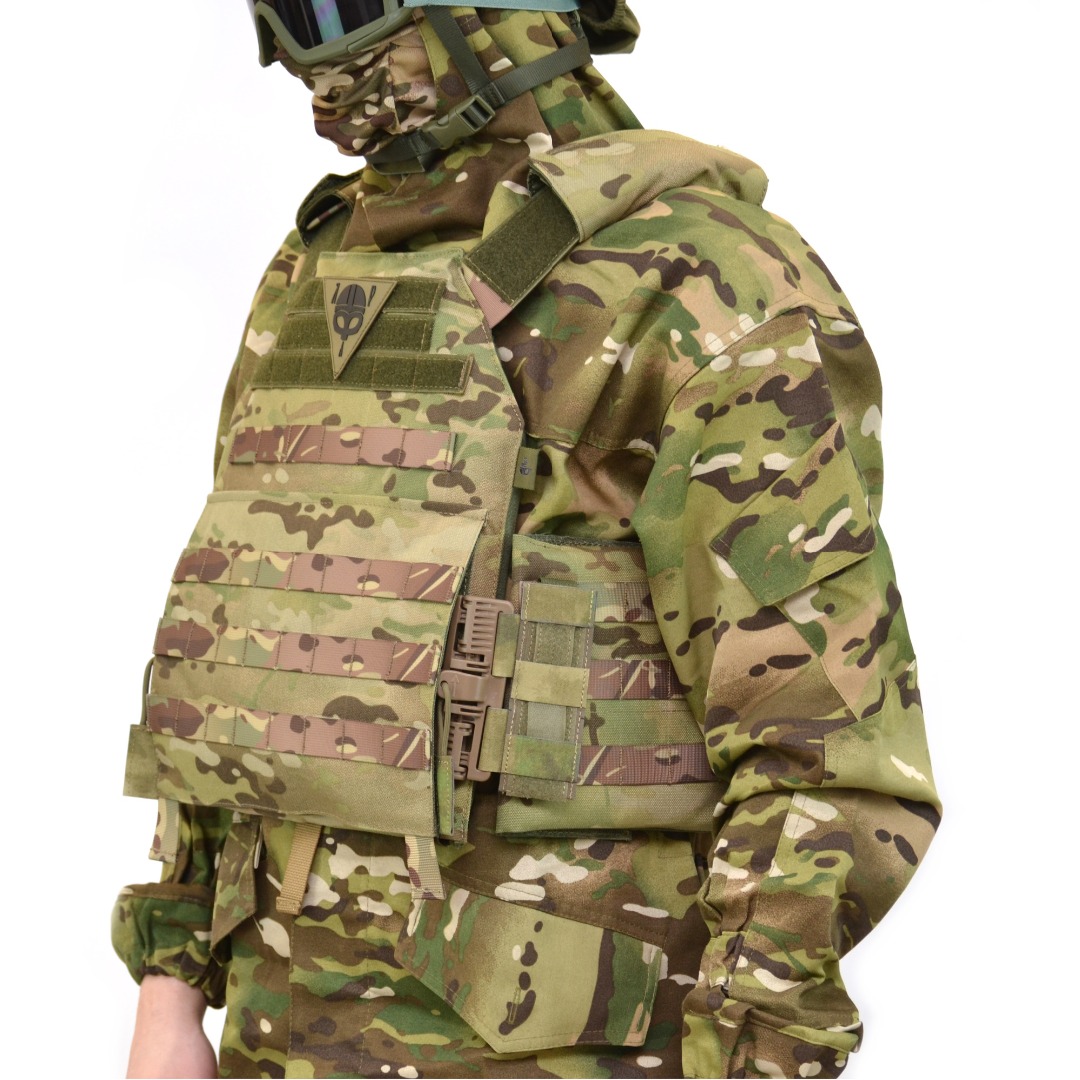 Эргономичная посадка и регулируемые стропы позволяют точно подогнать бронежилет под индивидуальные параметры бойца, прочная тканевая основа из кордуры с водоотталкивающей пропиткой обеспечивает долговечность эксплуатации в различных климатических условиях.