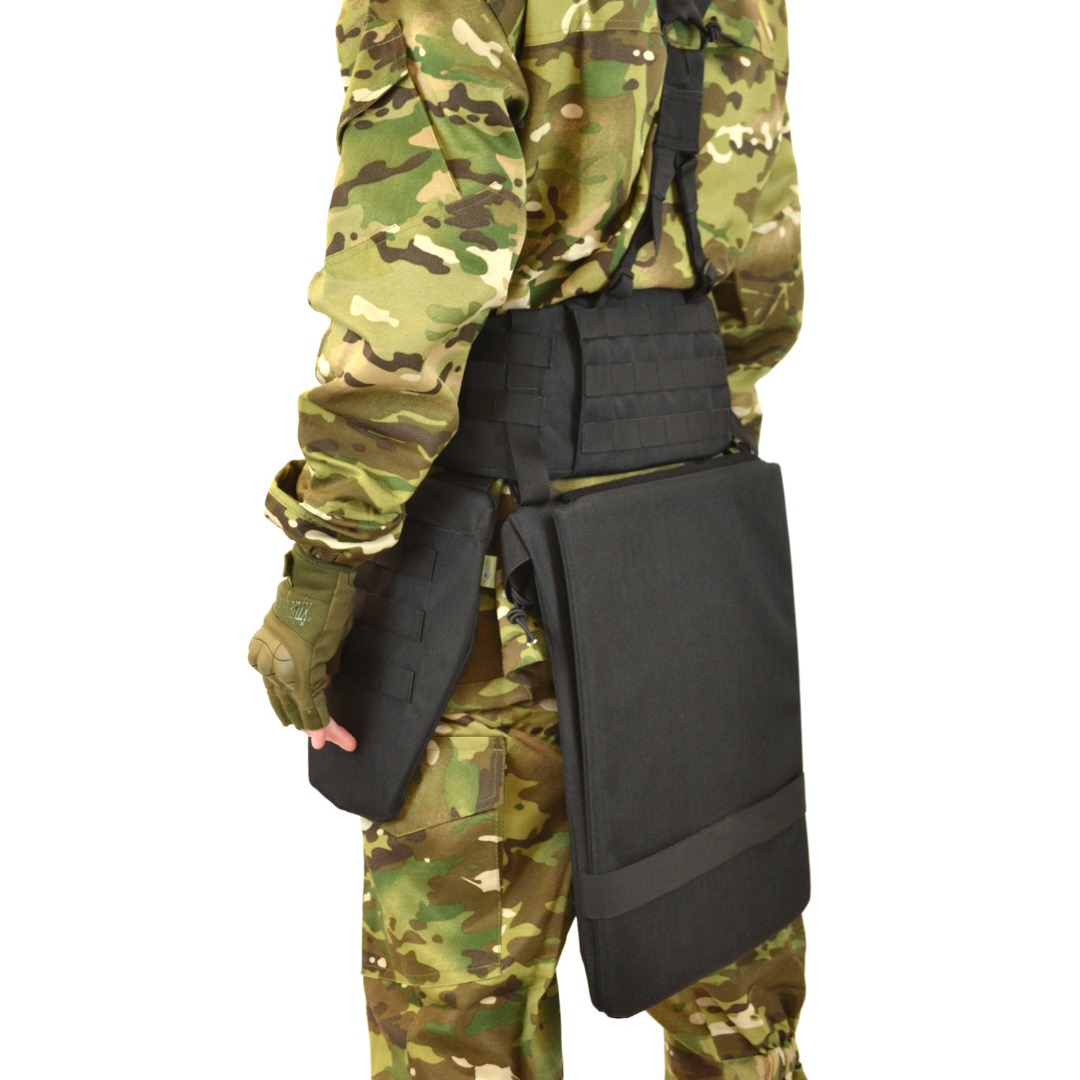 Тактический пятиточечник - Специализированный защитный модуль, обеспечивающий комплексную защиту критически важных зон нижней части корпуса, конструкция модуля разработана для эффективного прикрытия области ягодиц и внешней поверхности бедер - зон, наиболее уязвимых при подрывах и осколочных поражениях.