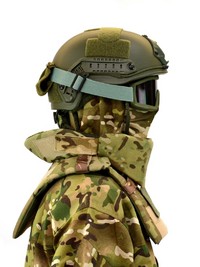 Имеет низкопрофильную конструкцию, которая обеспечивает свободу движений, не мешает при прицеливании и совместима с большинством тактических шлемов.